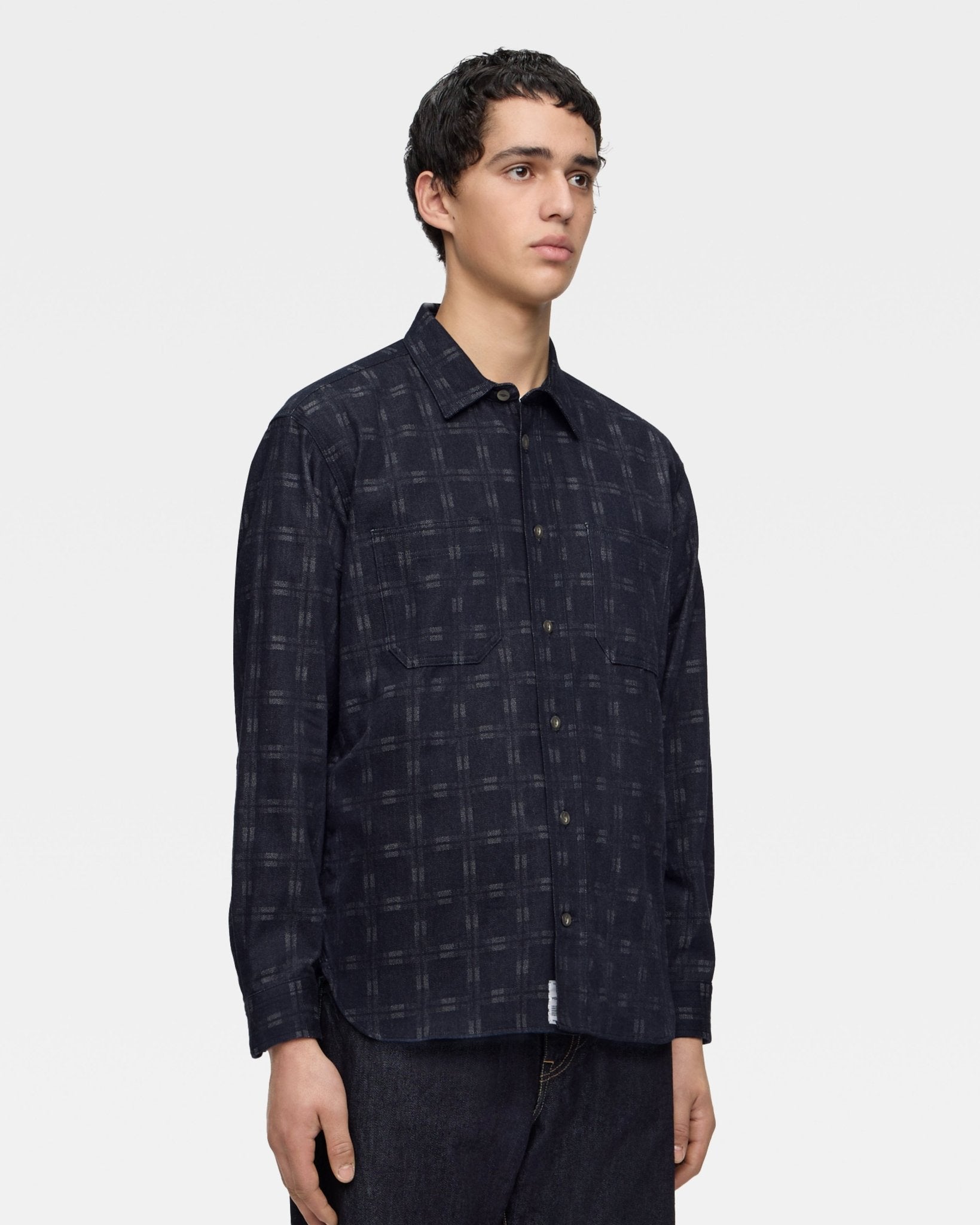 TRIPLE STITCH L/S JACQUARD SHIRT - INDIGO