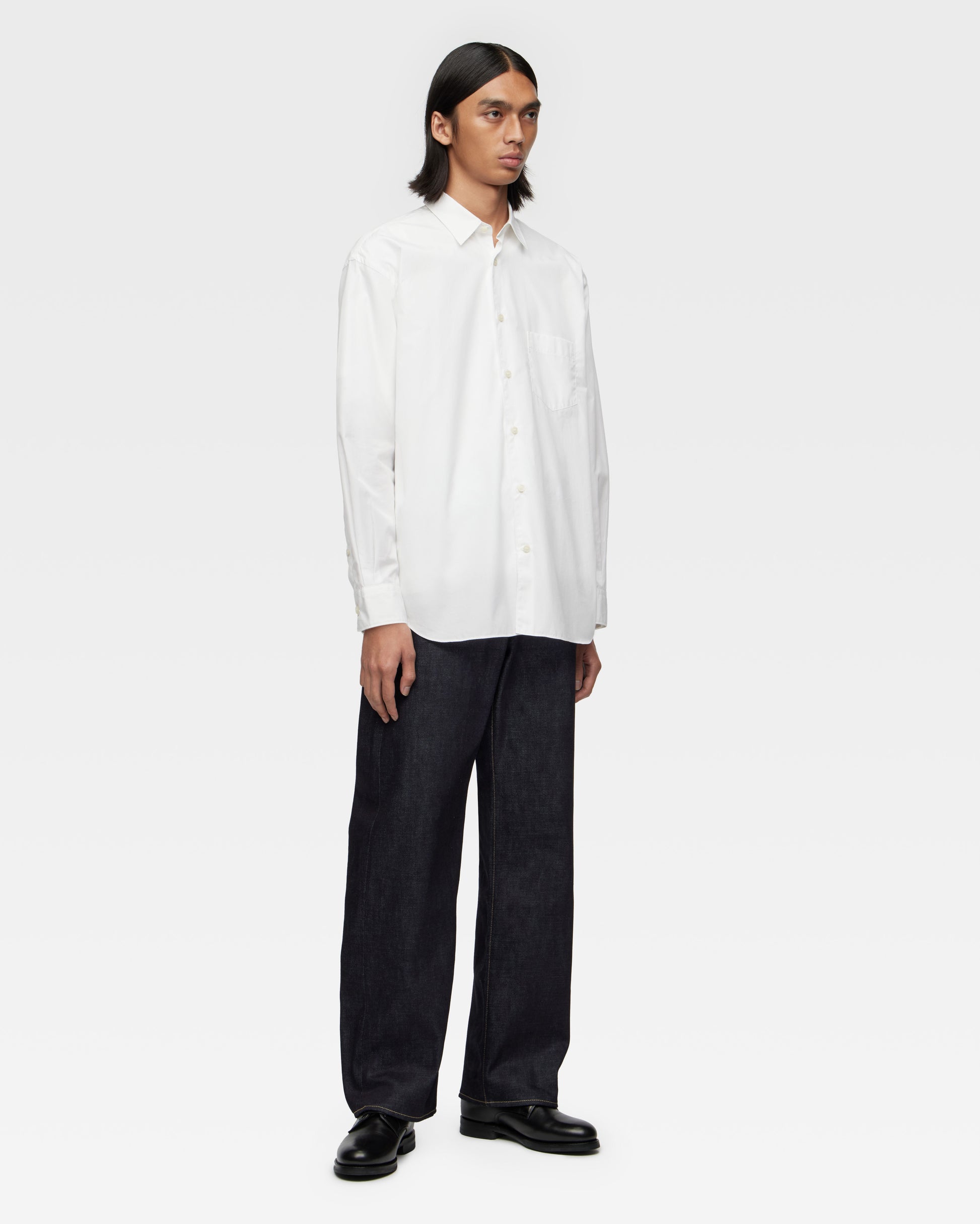 At MOMOTARO JEANS, we recommend a length that allows for a little extra room at the hem - "one cushion" (see example image).