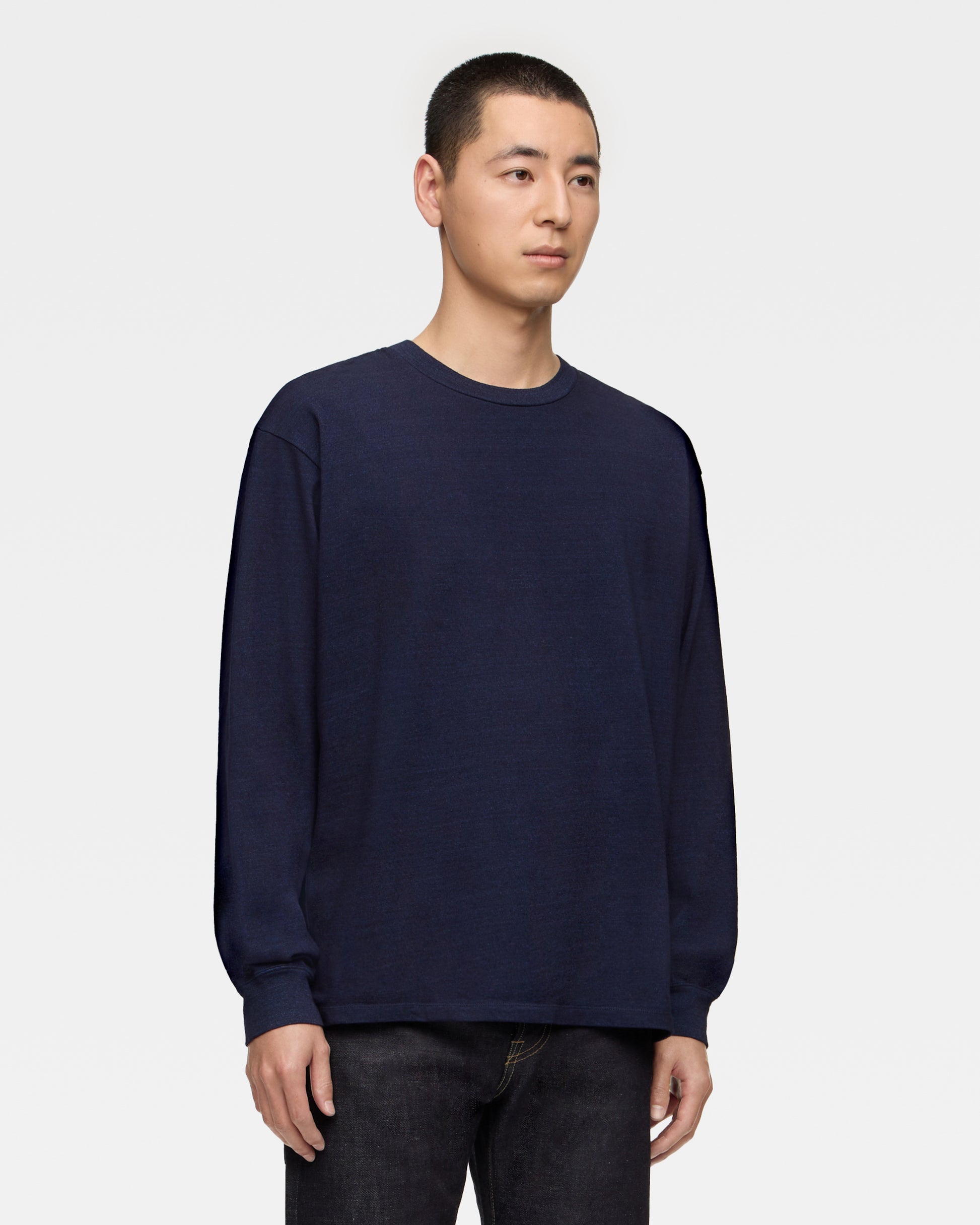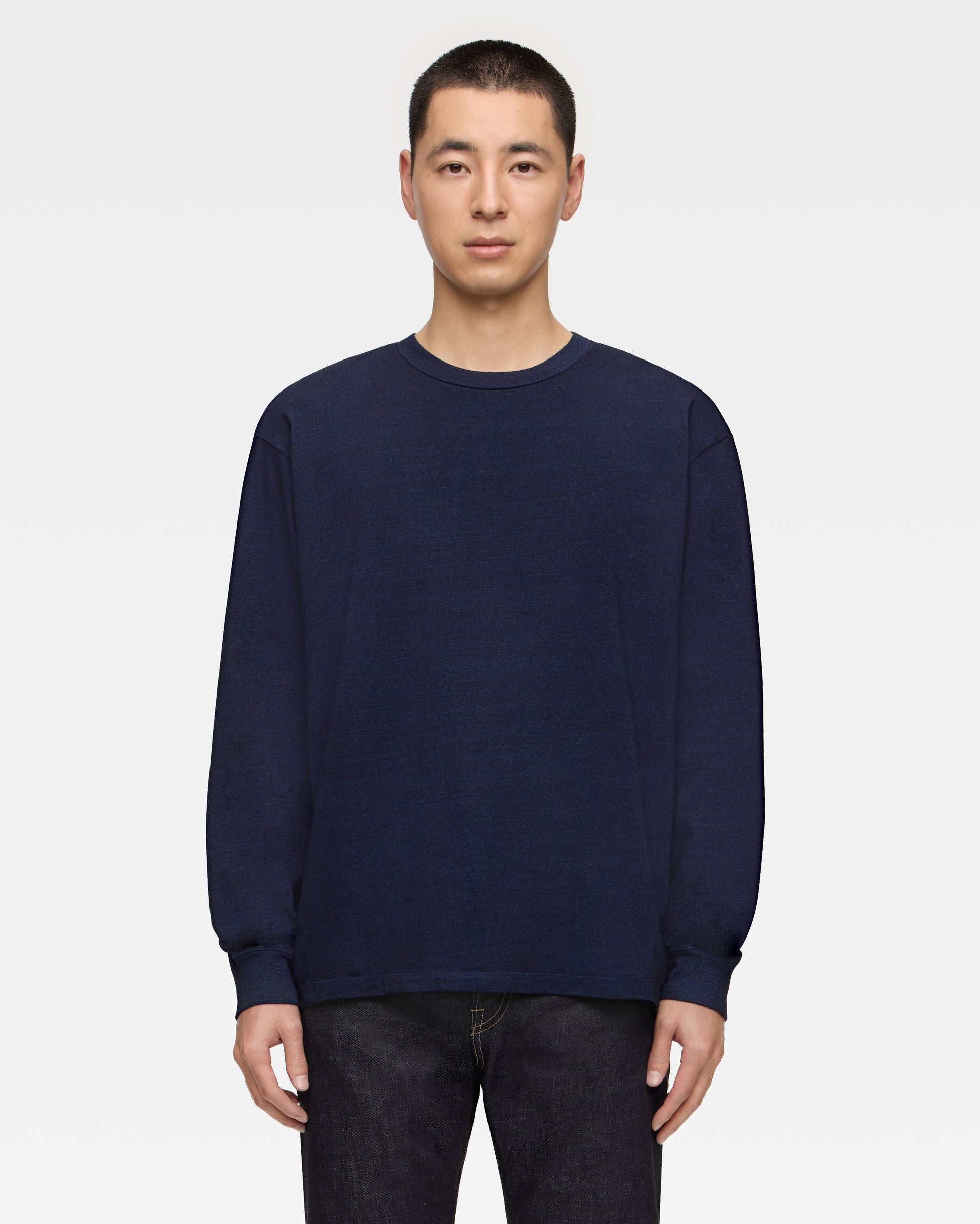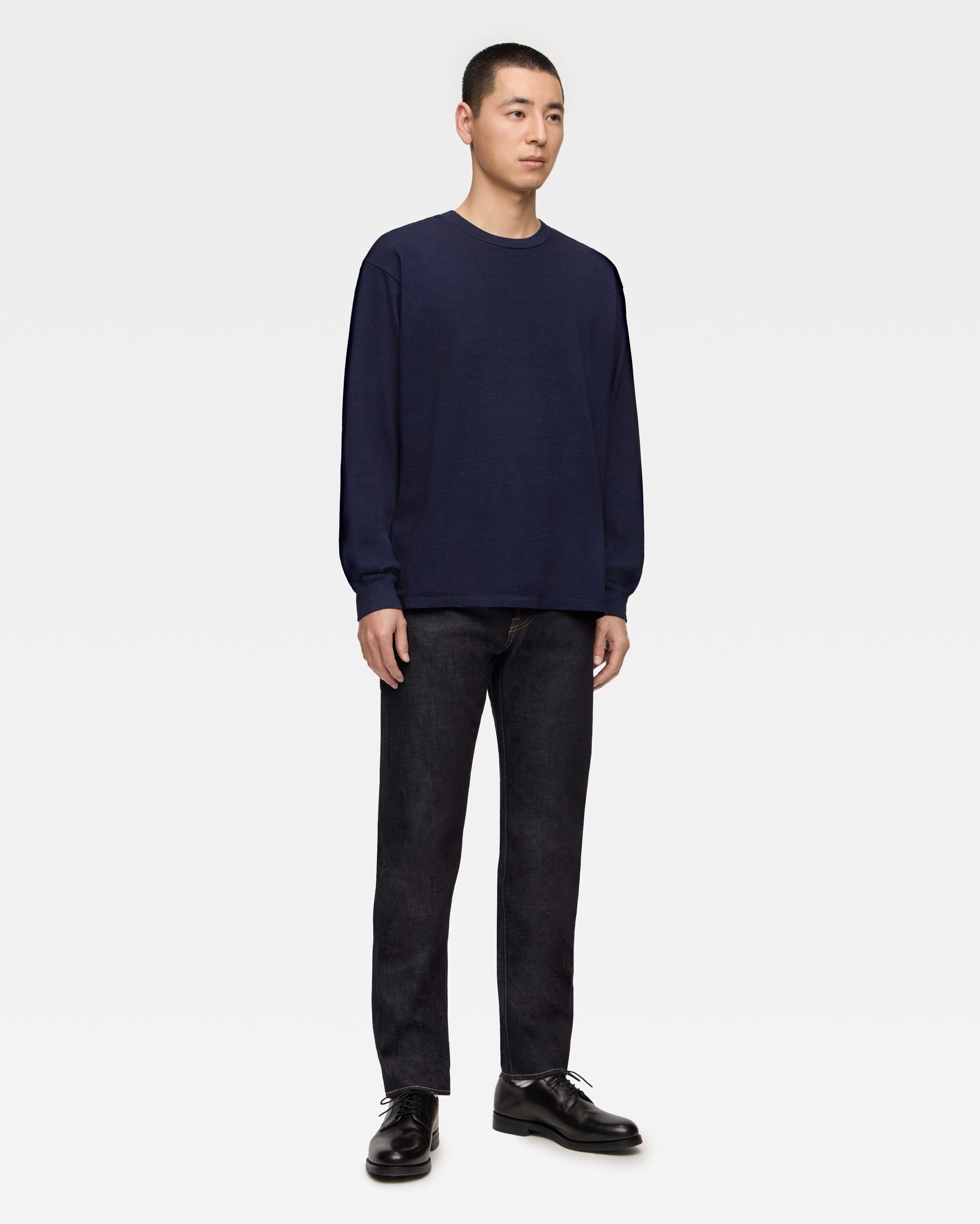 At MOMOTARO JEANS, we recommend a length that allows for a little extra room at the hem - "one cushion" (see example image).