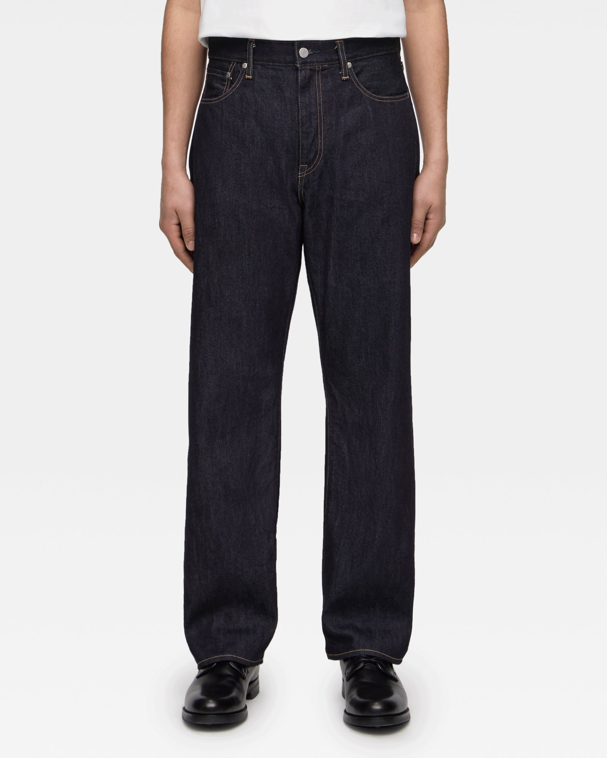The recommended length is calculated assuming that the jeans are worn above the hips. The amount of shrinkage at the desired position will be taken into consideration when finishing the jeans, so there is no need to take shrinkage into consideration at the customer's end. Please note that the position of the hem may change depending on where you wear the jeans.