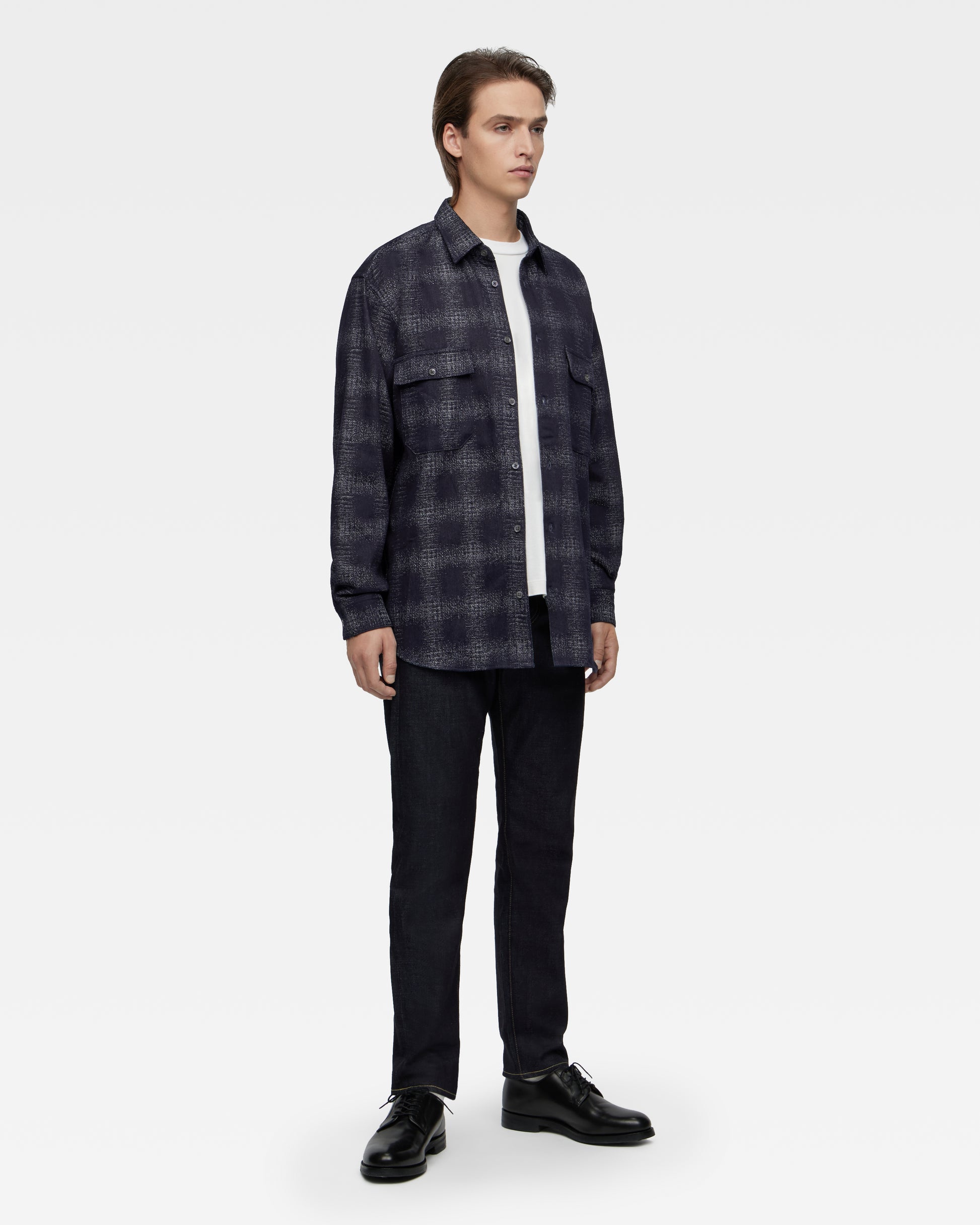 At MOMOTARO JEANS, we recommend a length that allows for a little extra room at the hem - "one cushion" (see example image).