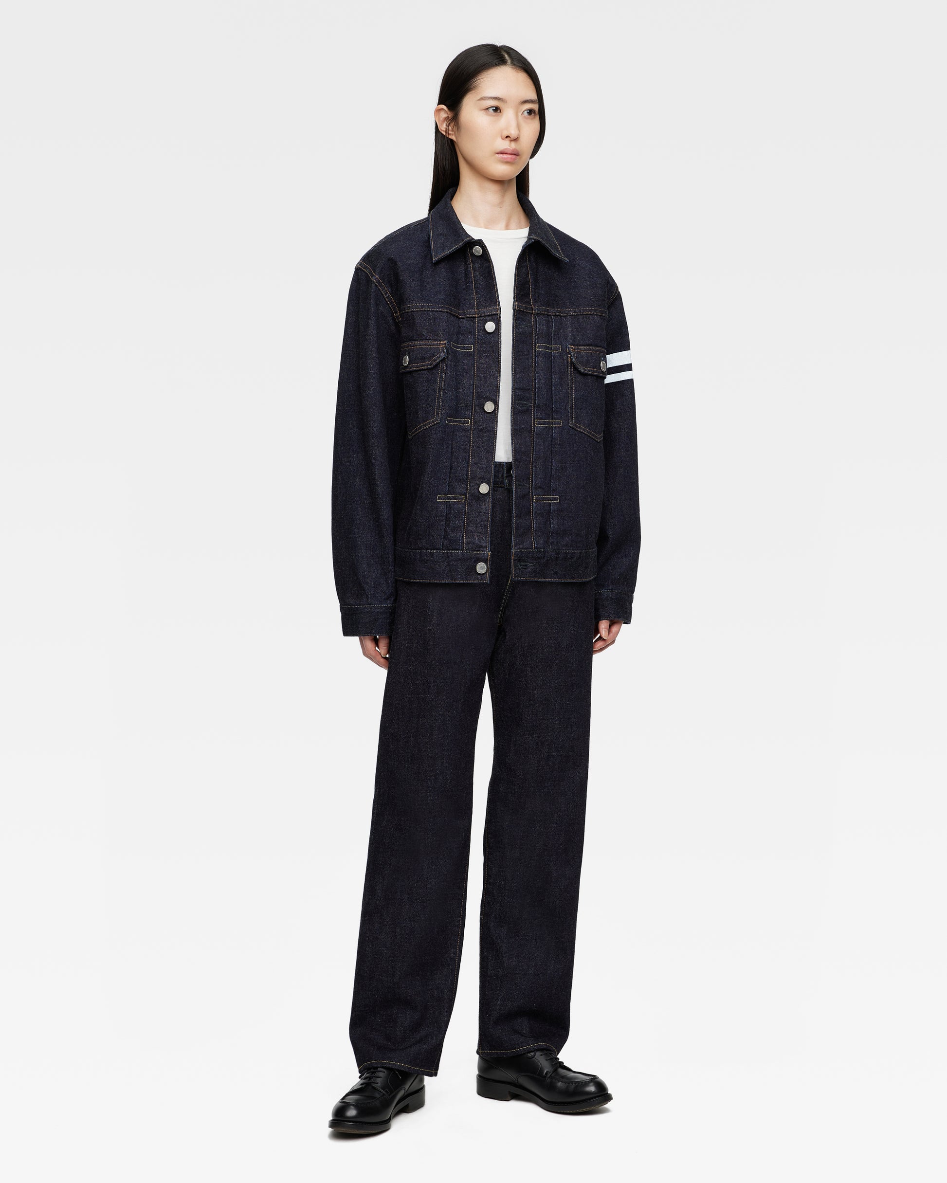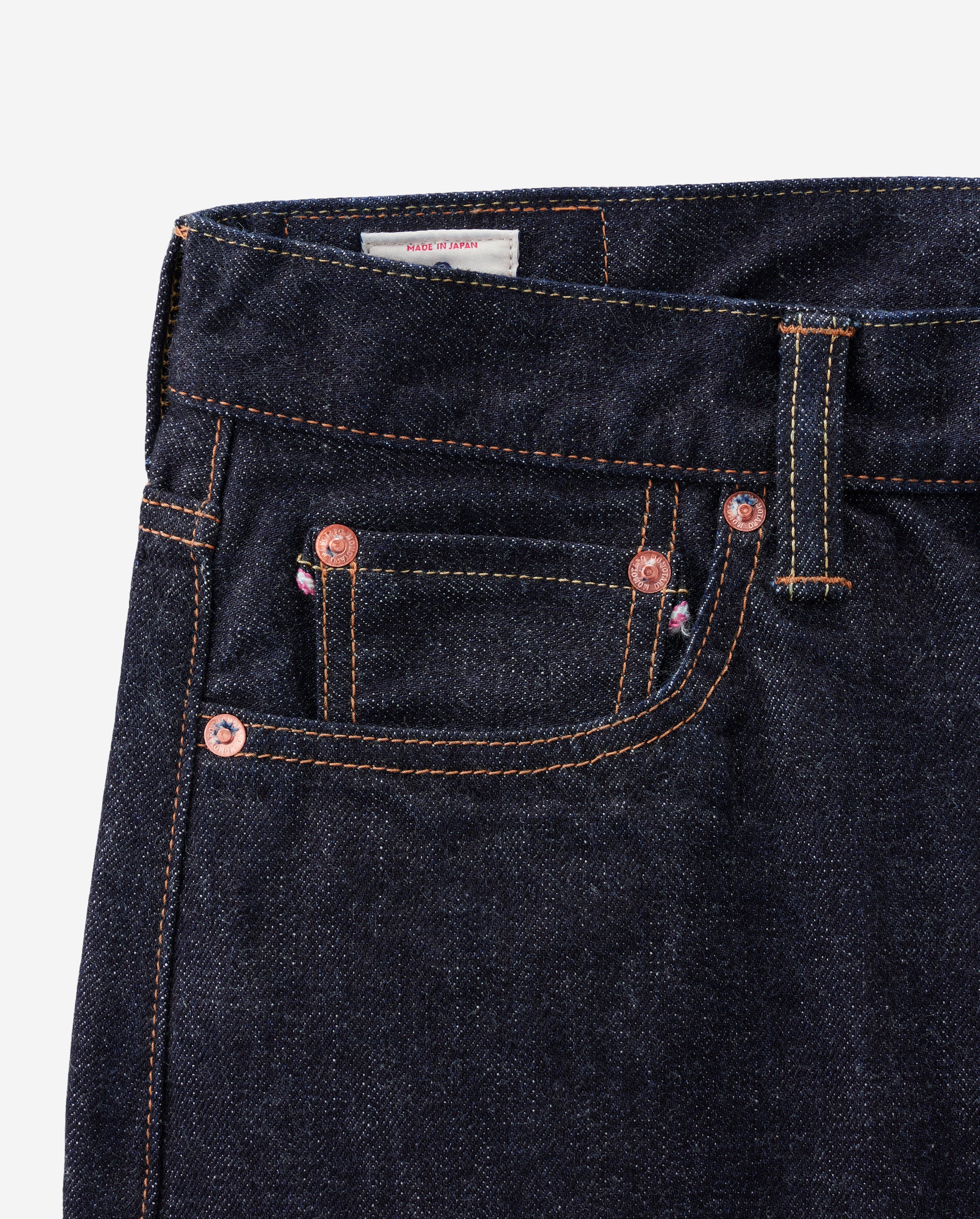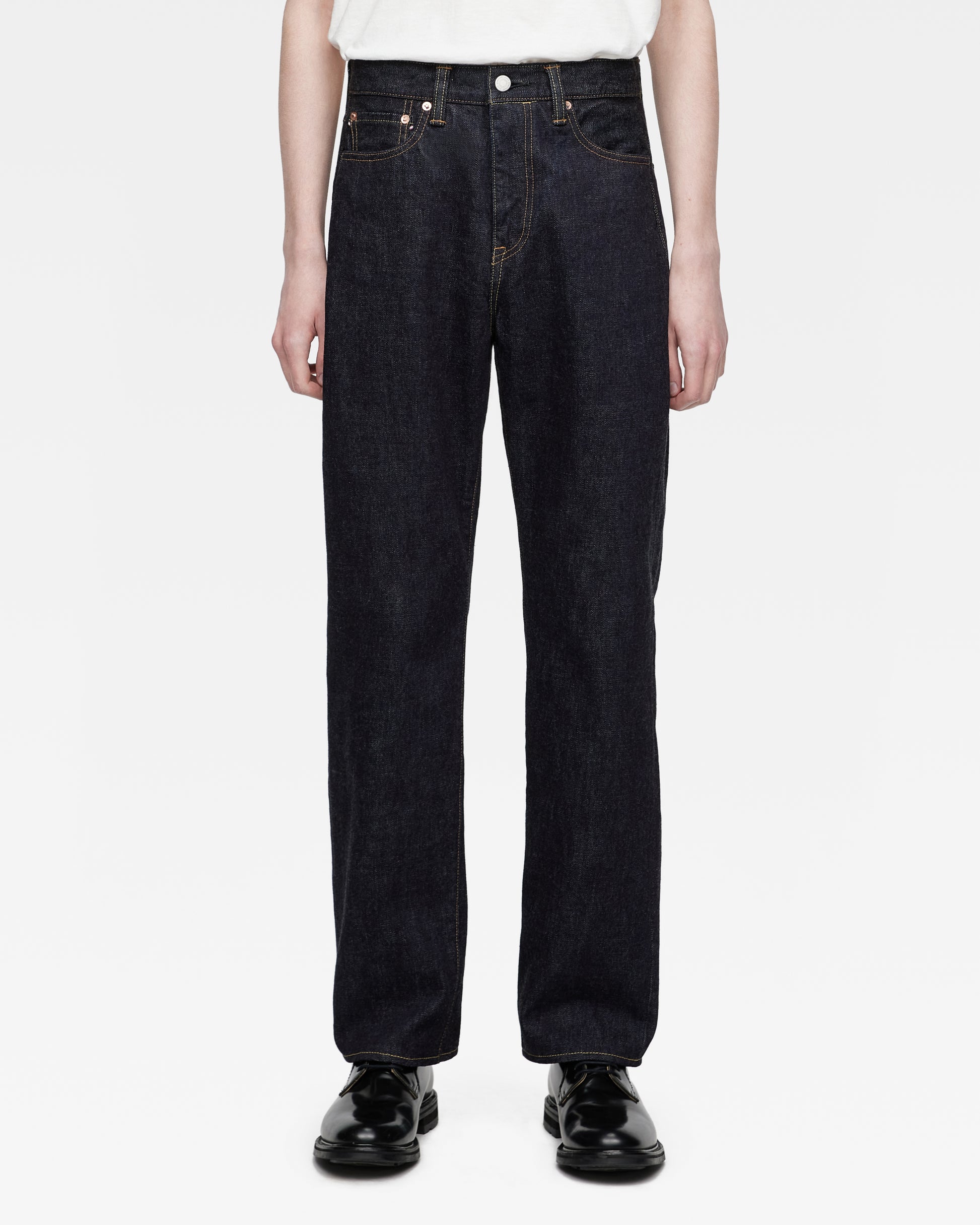 ジーンズを穿く位置は腰骨上を想定して、推奨の股下の長さを算出しています。ご希望の位置の縮み分を考慮してお仕上げしますので、お客様のもとでの縮み分のご考慮は不要です。また、穿く位置によって、裾の位置が変わる可能性がございますので、ご了承ください。