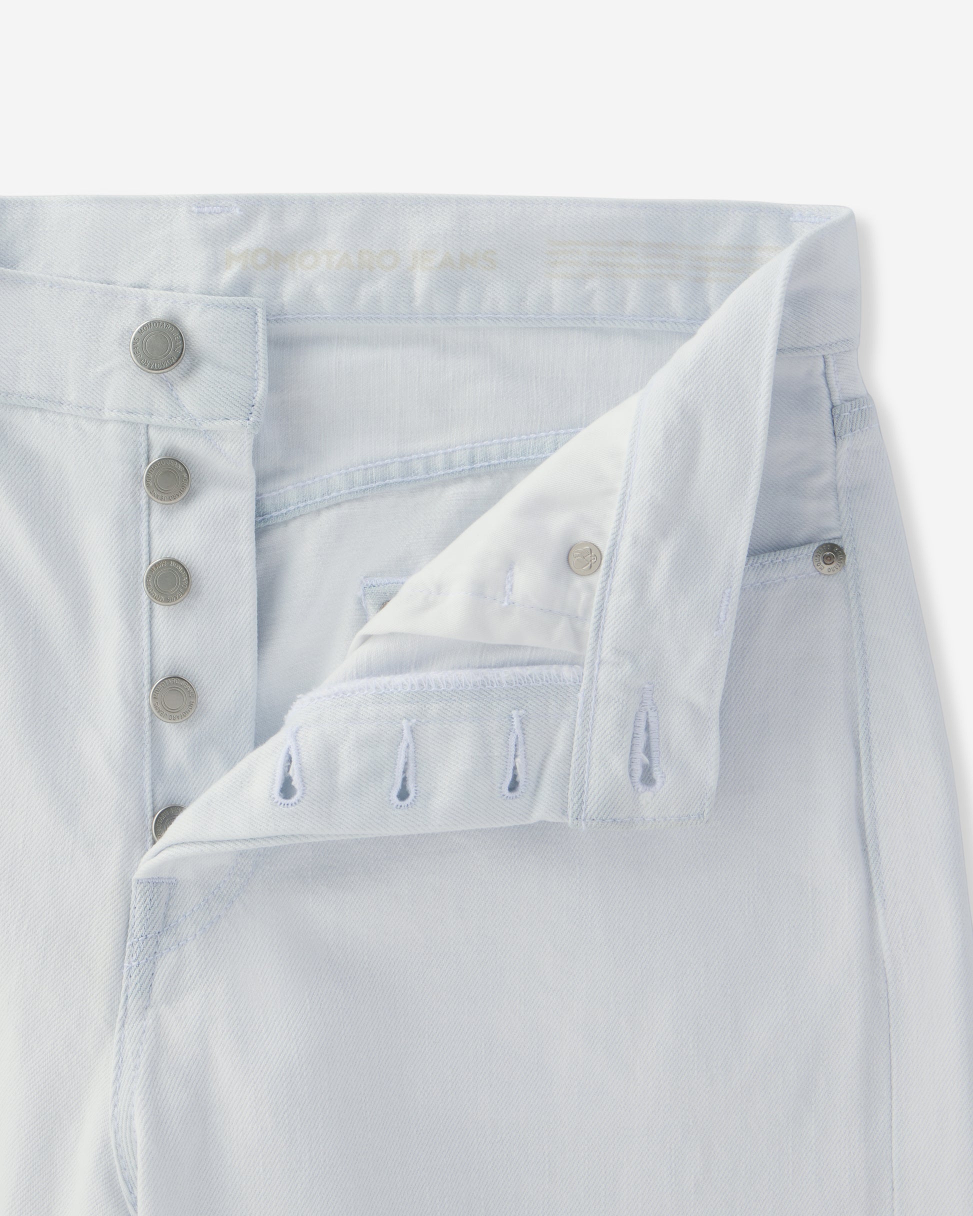 ジーンズを穿く位置は腰骨上を想定して、推奨の股下の長さを算出しています。ご希望の位置の縮み分を考慮してお仕上げしますので、お客様のもとでの縮み分のご考慮は不要です。また、穿く位置によって、裾の位置が変わる可能性がございますので、ご了承ください。