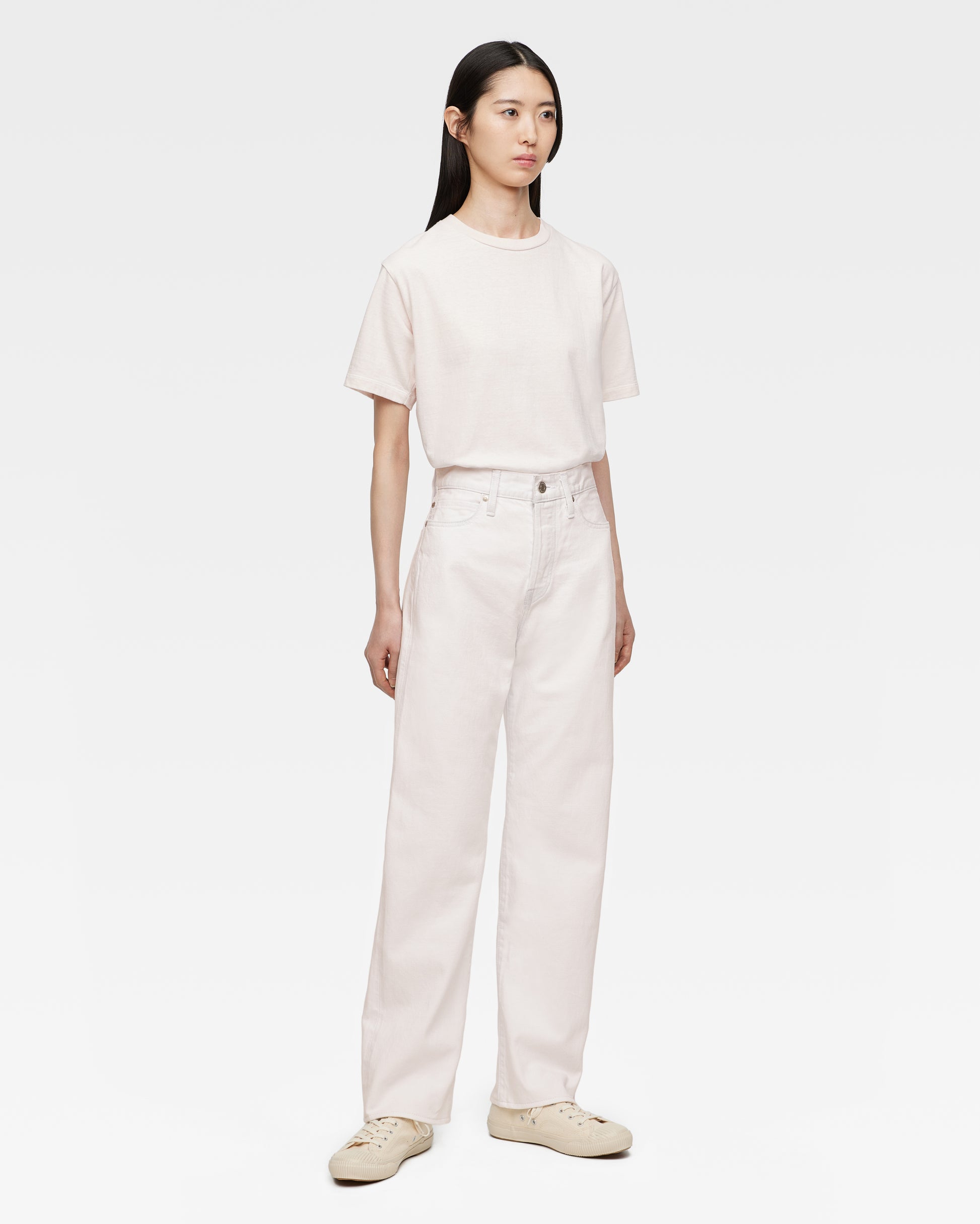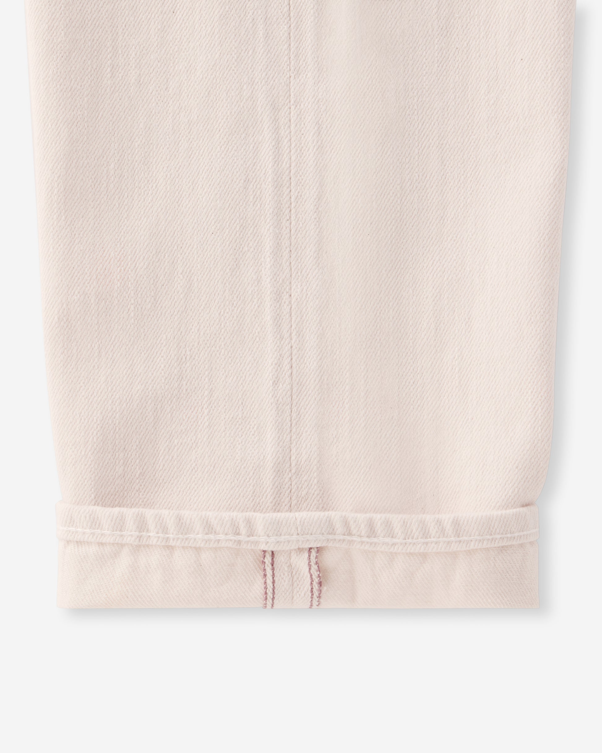 ジーンズを穿く位置は腰骨上を想定して、推奨の股下の長さを算出しています。ご希望の位置の縮み分を考慮してお仕上げしますので、お客様のもとでの縮み分のご考慮は不要です。また、穿く位置によって、裾の位置が変わる可能性がございますので、ご了承ください。